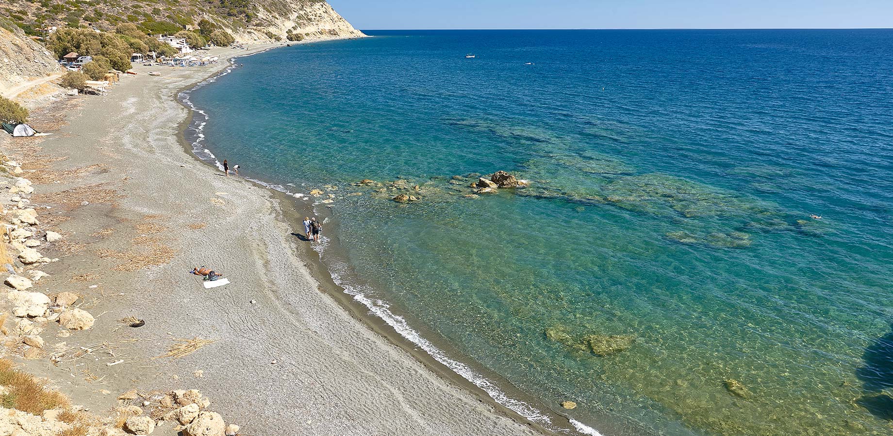 The next beach is that of the village of Arvi, which is located south of Amira, about 35 km west of Ierapetra, in a small plain in front of the renowned gorge of Arvi. The most famous variety of banana in Greece is grown in Arvi. The village has been developing greatly in recent years because it is located near beautiful beaches. The biggest part of the beach of Arvi is organized. There are also wonderful taverns where visitors can taste fresh fish or meat of their choice from local producers.